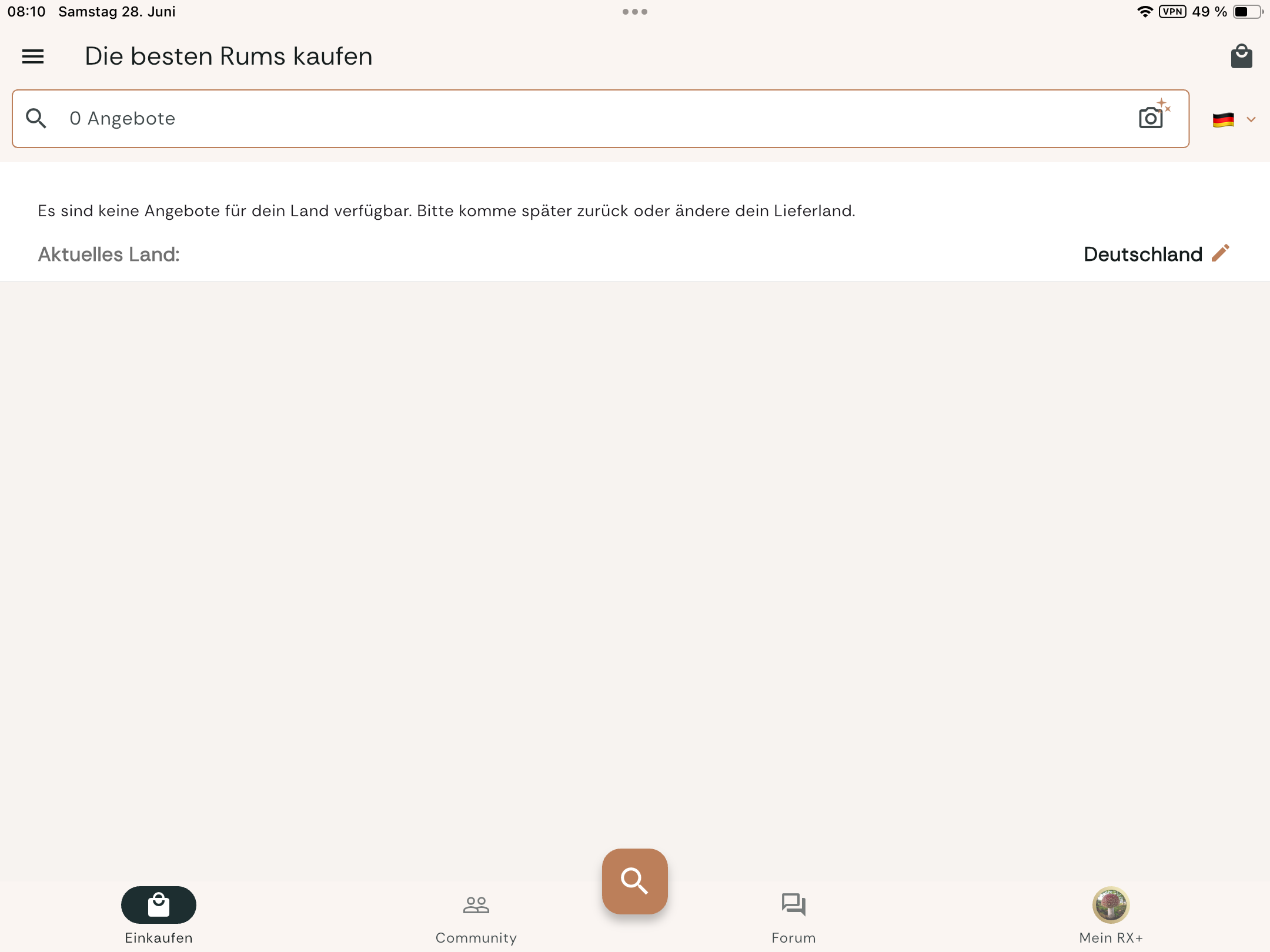 Currently, only those shops are visible in the app that deliver to the set country (“Profile” tab). ![]()
