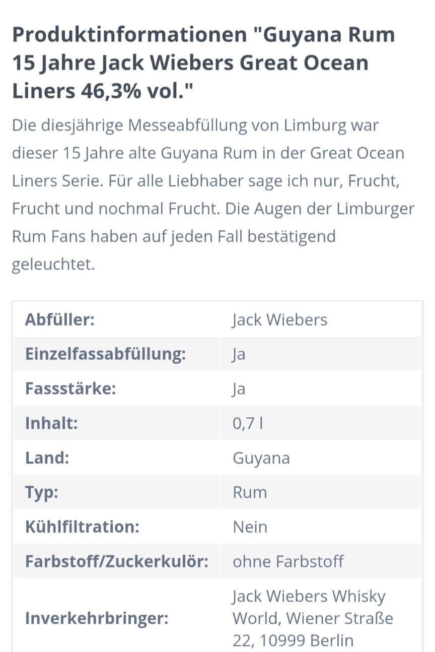 Dieser Spanish Heavy Rum 18 Years aus der C. Dully Selection ist ein faszinierendes Beispiel für hohe Handwerkskunst und aromatische Intensität. Nach dreiwöchiger Gärung in hölzernen Fermentern und anschließender Destillation in einer kupfernen Pot Still reifte dieser High Ester Rum 18 Jahre lang in einem Fass aus spanischer Pyrenäen-Eiche. Das Ergebnis ist ein außergewöhnlich dichter, komplexer und charakterstarker Rum, der Tiefe, Struktur und Eleganz vereint – ein echtes Unikat für Liebhaber kraftvoller, natürlicher Abfüllungen.